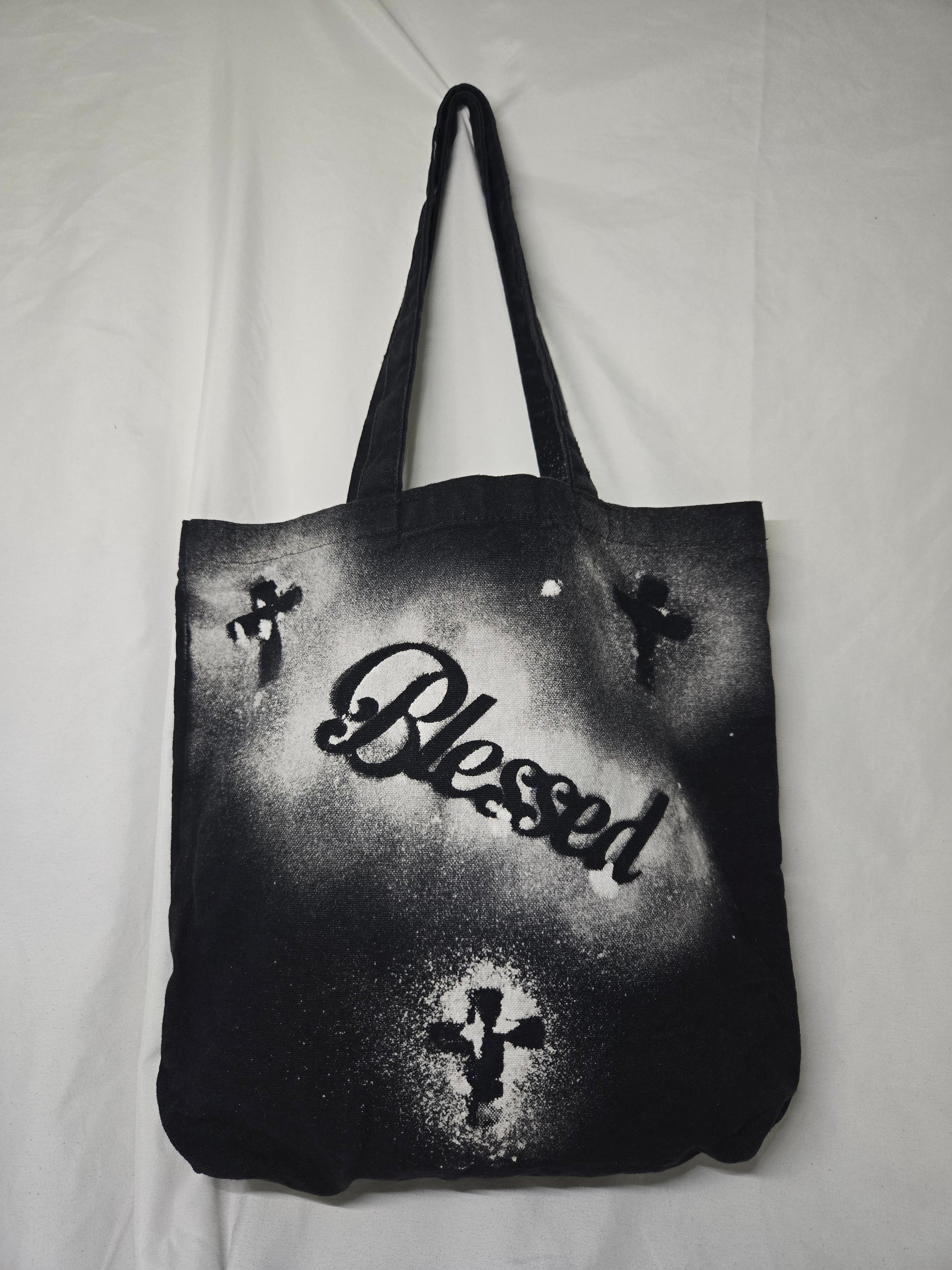 Unique hand‑bleached cross tote — durable, spacious, and prayed over with intention.